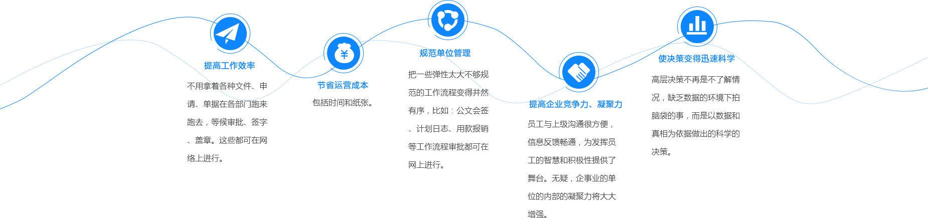 無論是企業(yè)還是政府機關(guān),都會有大量的文案需要處理,復(fù)雜的工作流程需要安排,決策者需要依據(jù)紛亂的信息作出重要的決定。擁有一套智能化、信息化的辦公系統(tǒng),對辦公人員和企業(yè)決策者來說,工作效率上的提高是顯而易見的。在網(wǎng)絡(luò)連接千萬家的時代,辦公自動化還使得不同地理位置之間的不同單位或部門之間進行協(xié)同辦公成為可能。今天的中國,“企業(yè)信息化”、“政府部門信息化”都忙得如火如荼,一套優(yōu)秀的辦公自動化(OA)系統(tǒng)將是企事業(yè)單位邁進數(shù)碼時代的“基石”。