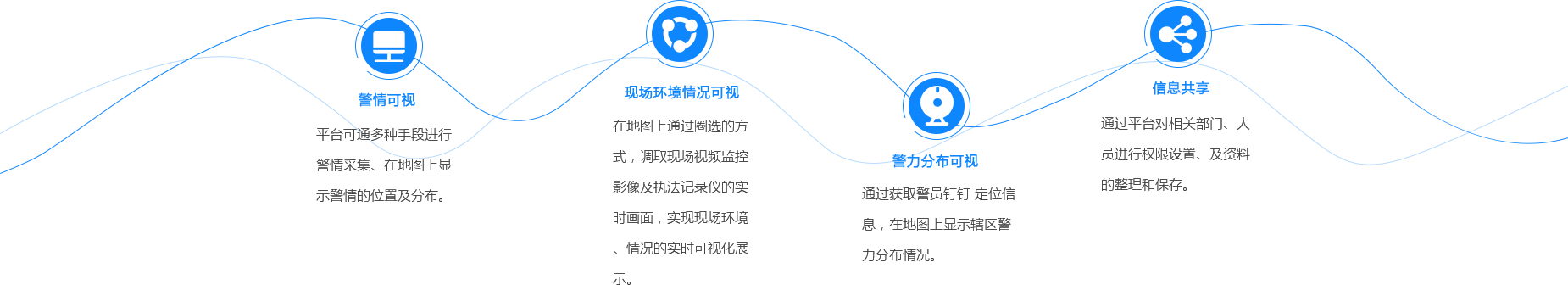 公安指揮調(diào)度平臺(tái)是利用地理信息系統(tǒng)技術(shù)特有的空間分析功能和強(qiáng)有力的可視化表現(xiàn)能力,使警務(wù)數(shù)據(jù)信息和空間信息融為一體,通過監(jiān)控各種警務(wù)工作元素在空間的分布狀況和實(shí)時(shí)運(yùn)行狀況,分析其內(nèi)在的聯(lián)系,合理配置和調(diào)度資源,從而提高各個(gè)部門快速響應(yīng)和協(xié)同作戰(zhàn)能力,實(shí)現(xiàn)輔助分析、決策和指揮調(diào)度的信息系統(tǒng)。